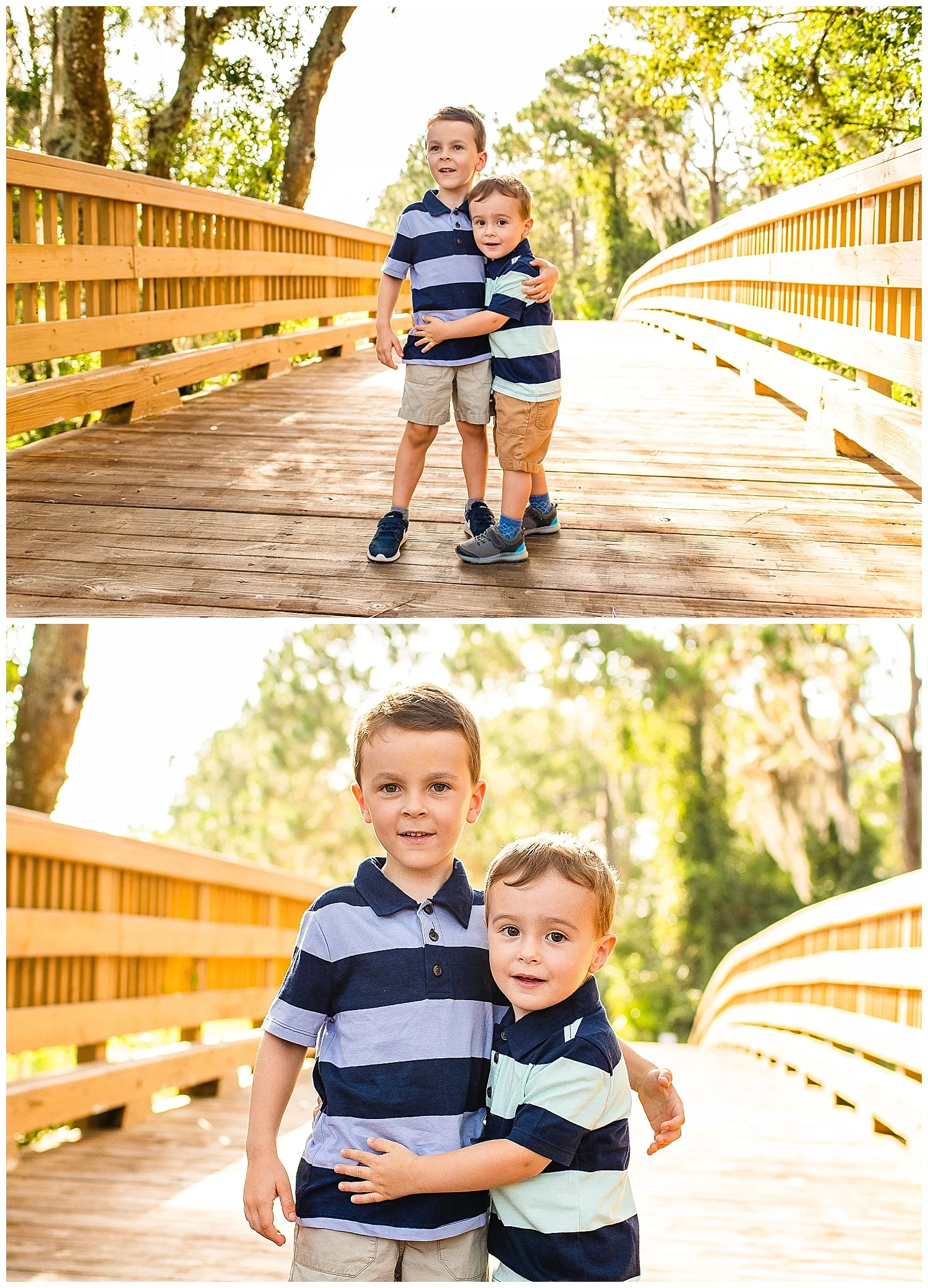 We had a fun filled (and HOT… thank you Florida summer) 15 minute session on the cutest bridge close to sunset. The boys ran and spun around the entire time. We raced across the bridge and had a contest to see who could go as slow as a turtle (the only way to actually get a picture of boys running straight at me)!